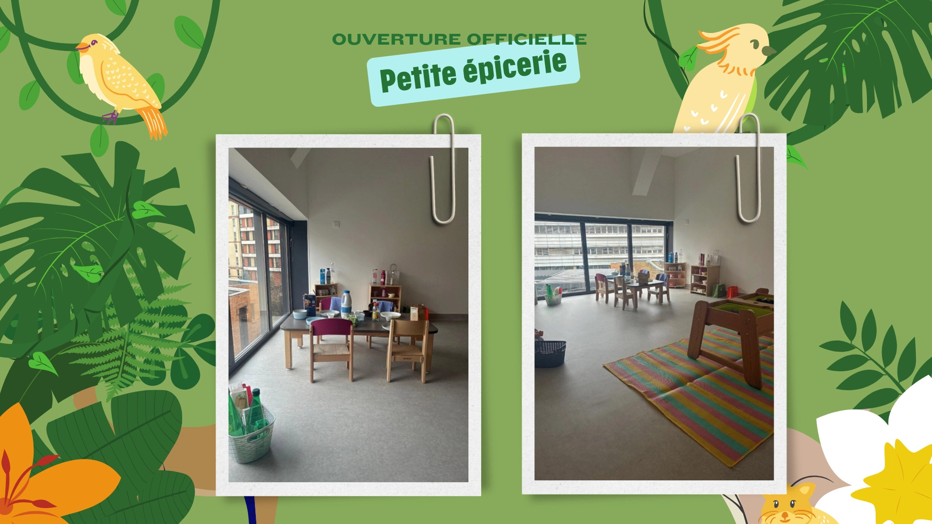 Face à cet intérêt marqué pour le jeu d’imitation, nous avons décidé d’accompagner cette dynamique en aménageant une véritable épicerie adaptée aux enfants au 2eétage ! Et ce projet à été possible grâce à l’implication des parents qui ont fourni de nombreux emballages de la vie quotidienne. Leur participation a permis la création d’un véritable espace riche et réaliste.