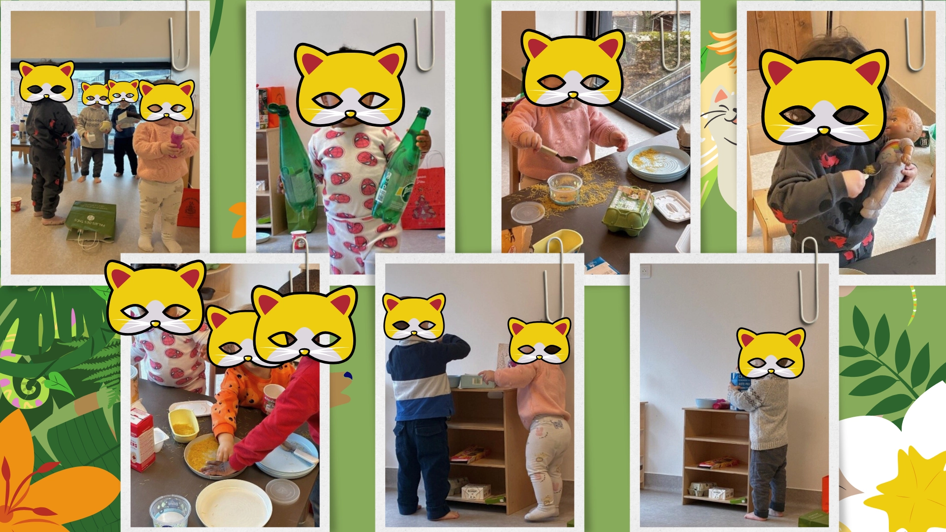 À travers nos observations quotidiennes, nous avons pu observer que beaucoup d’enfants imitaient régulièrement des situations du quotidien. « Au revoir, je vais faire les courses » ou en encore « je prépare un gâteau ».